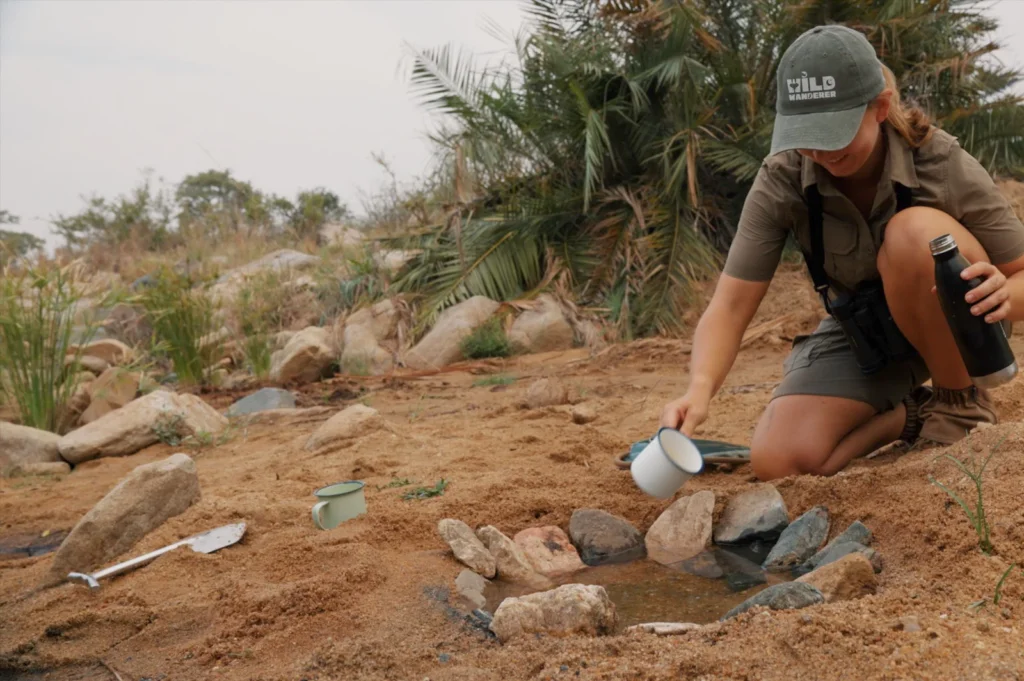 De watervoorziening tijdens de Trail is afhankelijk van regenval. Tijdens de zomermaanden, wanneer er voldoende water is, zul je water verzamelen uit poelen in niet-permanente rivieren, olifantenkuilen en depressies/pannen in het veld. Zodra de droge wintermaanden aanbreken, zullen de gidsen water droppen vóór het begin van de Trail. Elke avond en ochtend van de Trail heb je toegang tot schoon water om te drinken/koken en wassen, waarbij je op die momenten je waterflessen kunt vullen.